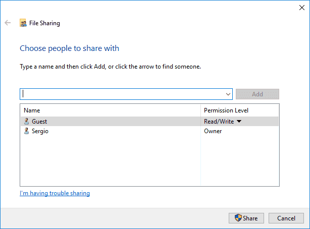 When sharing the folder over the network, make sure to add the "Guest" user read/write permissions.